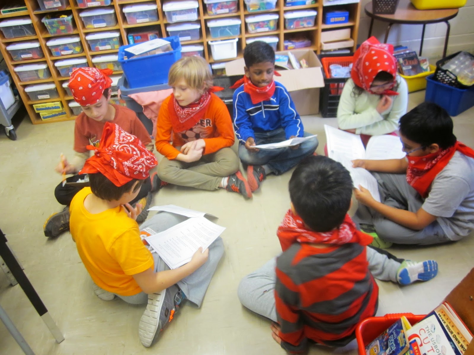 The students did a whole class choral reading of the play Canada, Here We Come (changed from Oregon, Here We Come to reflect the pioneer experience in Canada). This is a longer and more challenging play than our previous effort. The children will perform the plays in their groups next week.