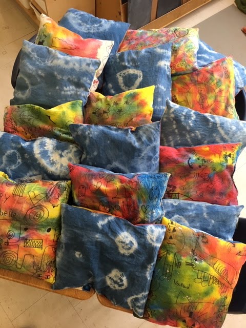 For our ongoing pillow project, the students learned how to use an iron to iron fabric. Each child ironed the two pieces of fabric he/she designed in preparation for sewing the fabric next week.